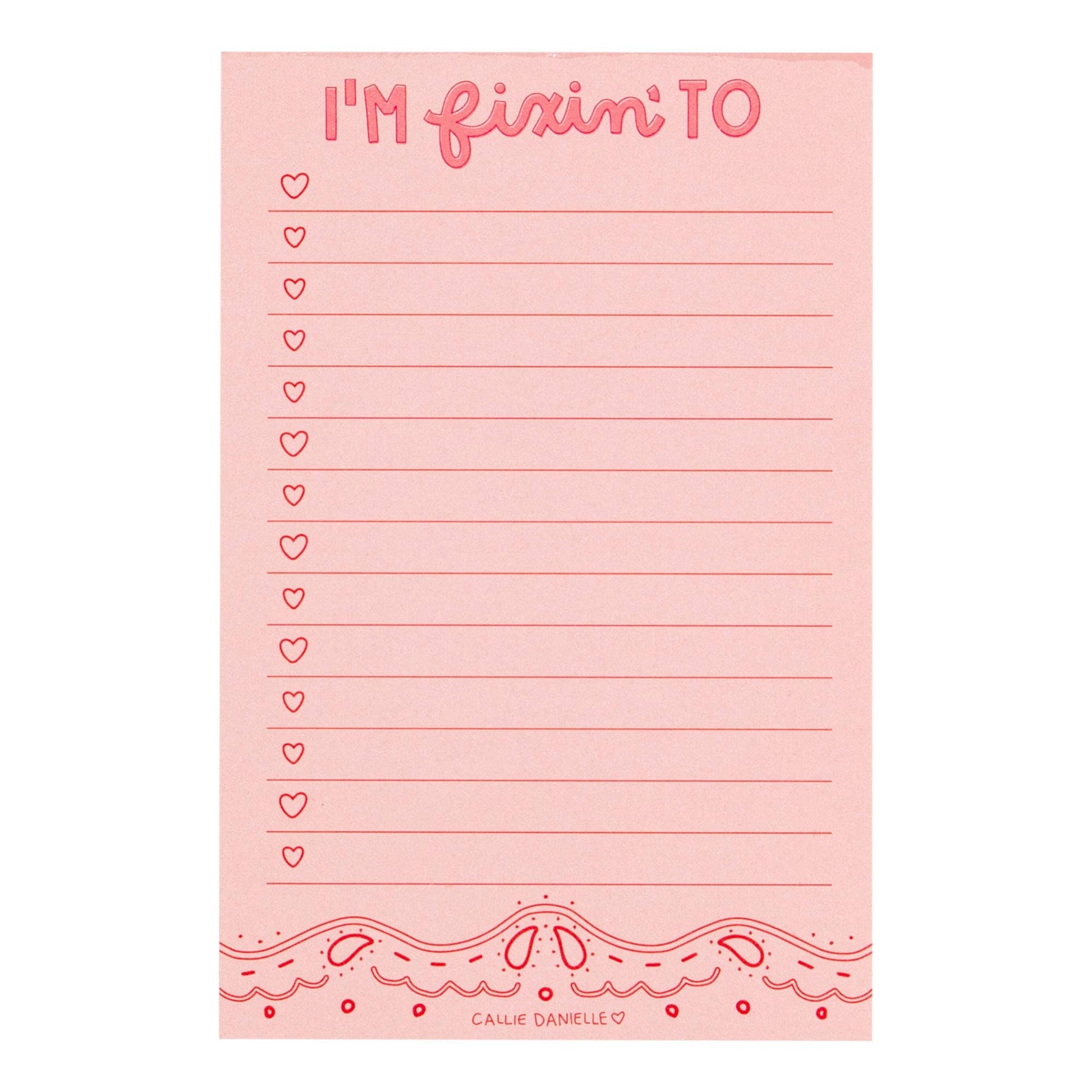 Add a little Southern charm to your to-do list with our I'm Fixin' To notepad! Featuring a classic Western scalloped border and a motivational reminder to take action, this notepad is perfect for jotting down tasks, goals, or notes with a dash of Southern spirit. With 52 lined sheets, it’s designed for a full year of to-do lists, reminders, and everyday inspiration. Compact and stylish, this 4x6" notepad is a must-have for your desk, kitchen counter, or office space.