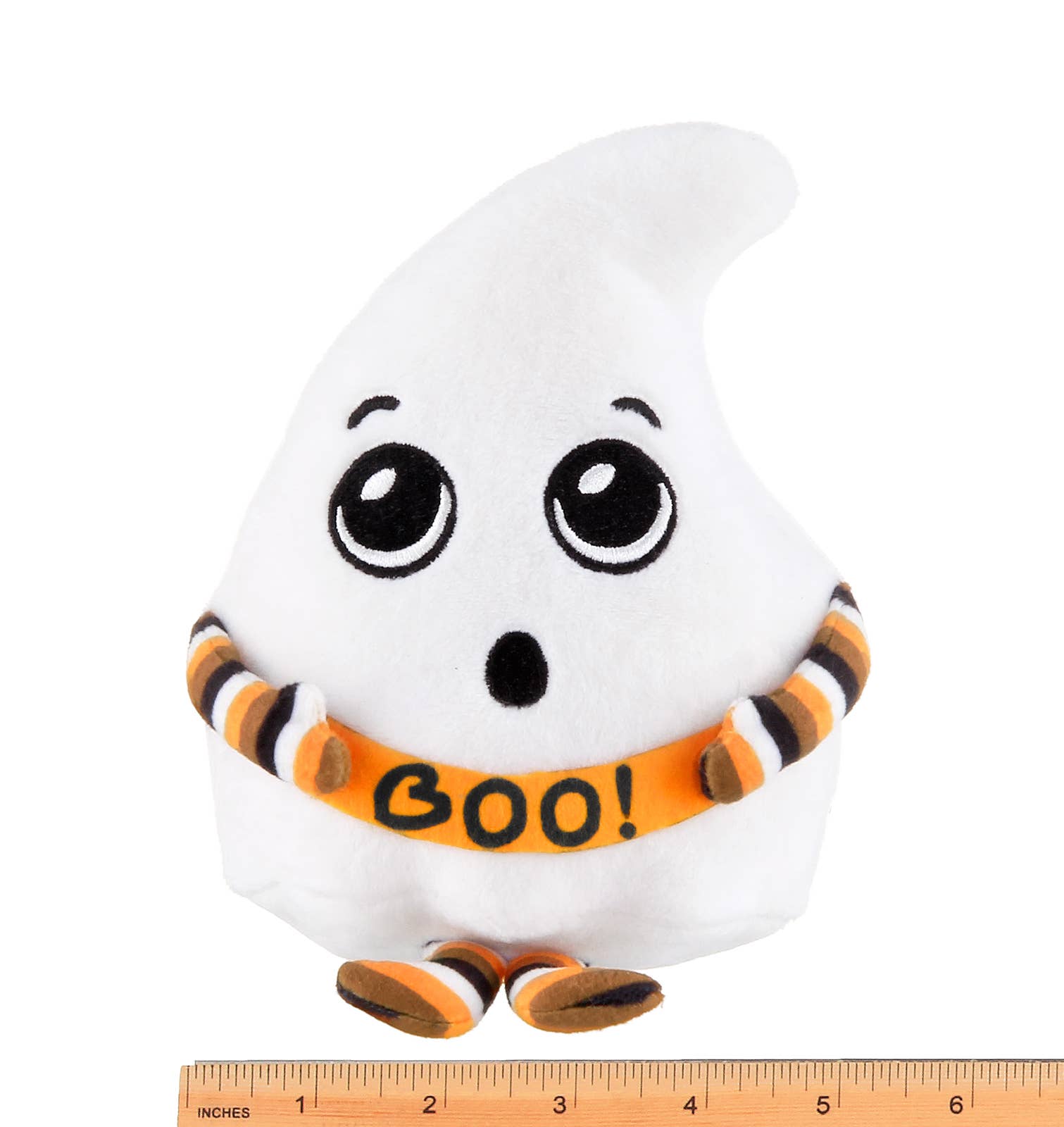 MEET SPIRIT THE GHOST: Introducing Spirit the Ghost, an adorable 7-inch tall Halloween plush! This soft, machine washable white ghost features charming striped arms and a "Boo!" banner. Perfect as a baby Halloween toy or a delightful addition to your Halloween stuffed animal collection. Get ready for spooky fun with this cuddly ghost plush. ENDLESS CUDDLES: Specially designed for cuddles and creative posing. Its small size is perfect for little hands. Let this friendly ghost be your child's companion this season. Explore imaginative play with our high-quality stuffed animal. Get this cute Halloween stuffed toy for endless cuddles and fun! PERFECT HALLOWEEN GIFT: Delight kids of all ages with adorable Halloween plush toys! From friendly ghost plushies to cute pumpkin stuffies, these huggable treats make perfect gifts. Whether it's a spooky ghost toy or a charming fall stuffed animal, these Halloween-themed plushies bring joy to boys and girls alike.